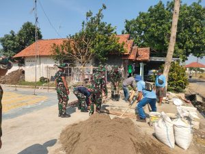 Dalam rangka mendukung program TNI Manunggal Membangun Desa (TMMD) ke-126, Sertu Naviga bersama dua orang Anggota Satgas TMMD melaksanakan pembangunan Pos Keamanan Lingkungan (Poskamling) di Desa Longok, Kecamatan Sliyeg, Kabupaten Indramayu, Rabu (09/10/2025).