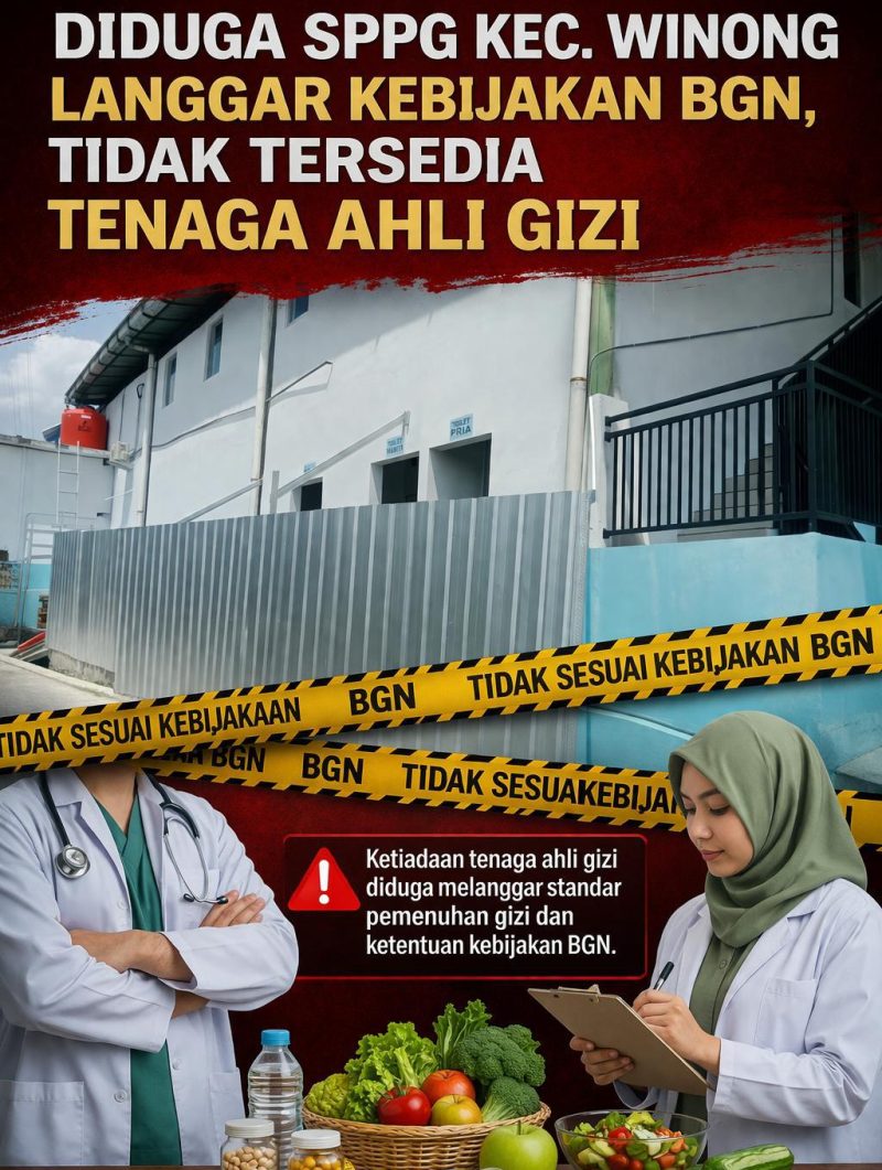 ‎‎Informasi berita yang liburnya salah satu tempat SPPG yang berada di Kecamatan Winong, kini beredar informasi dari masyarakat setempat jika SPPG itu, tidak tersedianya tenaga Ahli Gizi. Hal tersebut diduga melanggar kebijakan dari Badan Gizi Nasional (BGN) dan hal itu juga dapat membahayakan kesehatan Penerima MBG (Makanan Bergizi Gratis) itu.