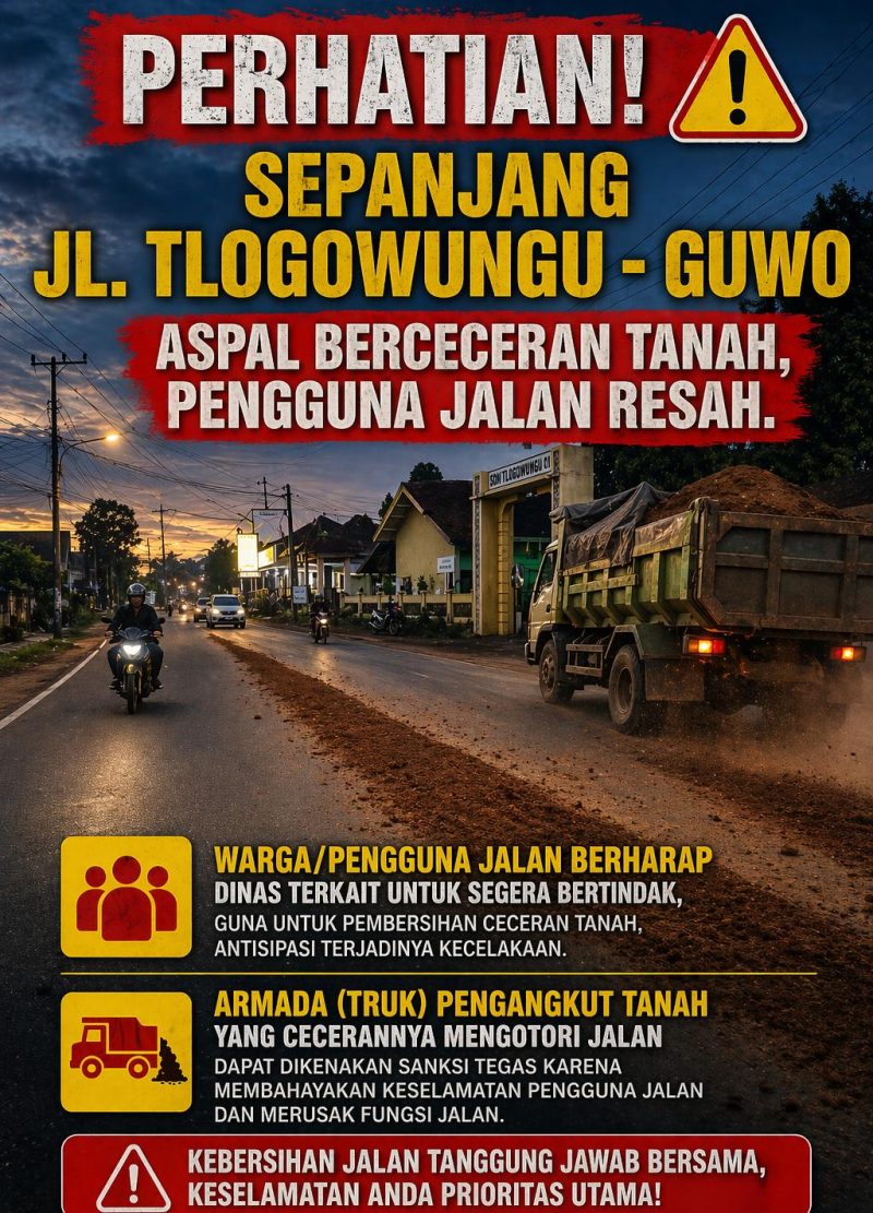 Dengan hal tersebut banyak dirasakan pengguna jalan yang saat ini melintasi dari sepanjang jalan Tlogowungu menuju Desa Guwo. Sehingga mereka resah dengan keadaan jalan yang penuh tanah berceceran, karena dapat mengancam keselamatan. Mereka harus ekstra hati – hati untuk menghindari terjadinya kecelakaan.