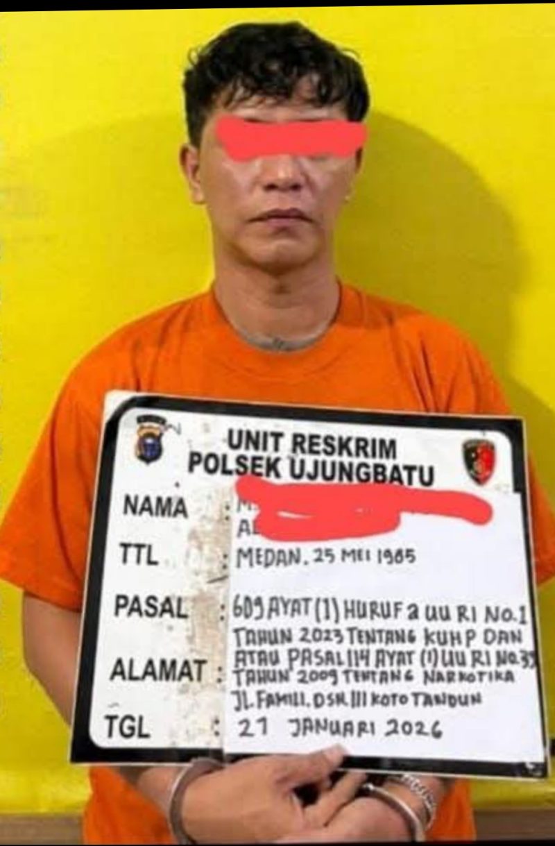 Oknum kades berinisial MTRS alias Tosin diamankan oleh Unit Reskrim Polsek Ujung Batu.
