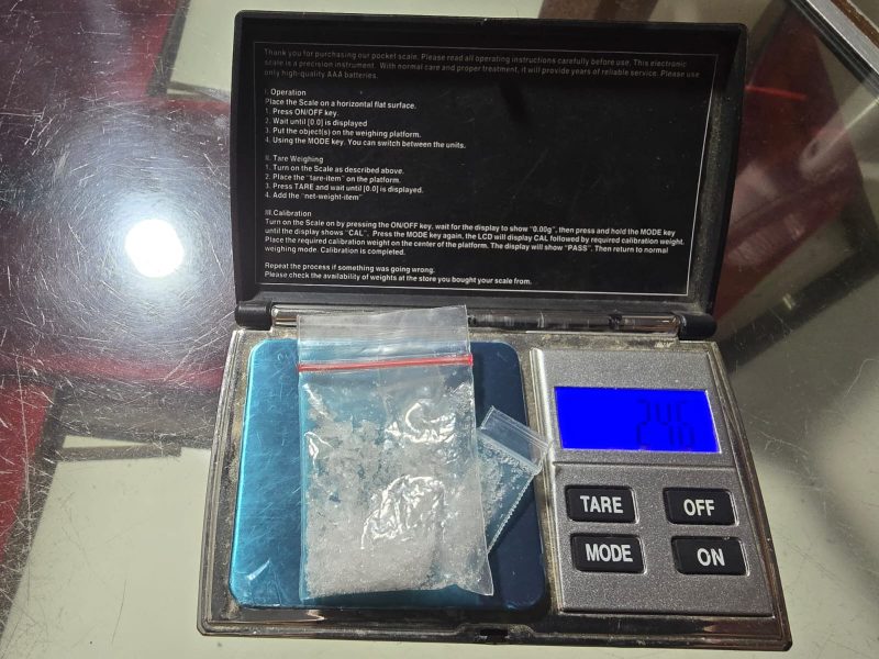 Dari hasil penggeledahan, ditemukan barang bukti berupa satu paket sabu ukuran sedang dan dua paket kecil dengan total berat kotor 2,46 gram. Selain itu, turut diamankan 24 plastik bening, pipet sendok, botol plastik, satu unit handphone, uang tunai Rp500.000 yang diduga hasil transaksi, serta celana yang digunakan pelaku untuk menyimpan barang haram tersebut.