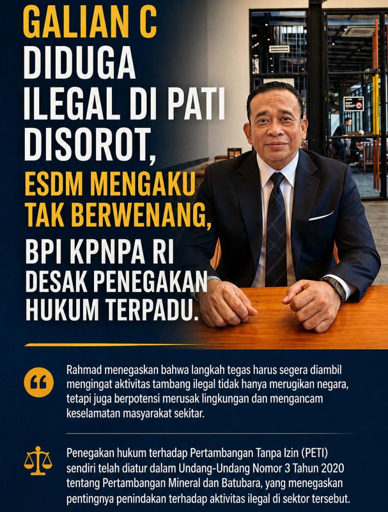 Gerbanginvestigasi.com, Pati — Aktivitas pertambangan galian C yang diduga ilegal di wilayah Kabupaten Pati kembali menjadi sorotan publik setelah ramai diberitakan sejumlah media online. Namun, respons dari Dinas ESDM justru memunculkan polemik baru.