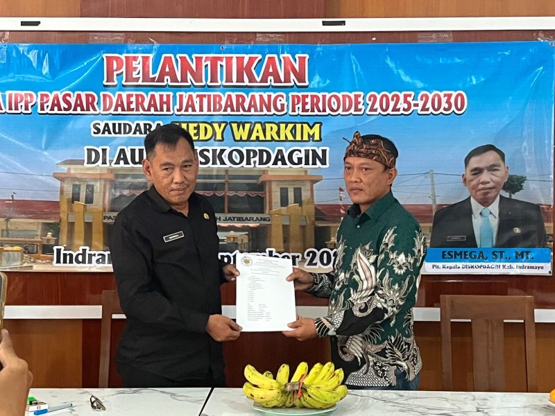 Hedy Warkim selaku Ketua Ikatan Pedagang Pasar (IPP) yang terpilih telah dikukuhkan dan dihadiri oleh Muspika Jatibarang, pada pelantikan bertempat di Aula Diskopdagin Kabupaten Indramayu. Jumat, (19/09/25).