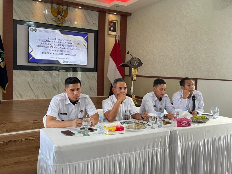 Lembaga Pemasyarakatan (Lapas) Kelas IIB Indramayu sukses melaksanakan kegiatan Penerimaan dan Penandatanganan Dokumen Perjanjian Kerja Peserta Program Pemagangan Nasional Batch 2 Tahun 2025, Selasa (25/11/2025).
