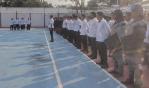 Kepala Kesatuan Pengamanan Lembaga Pemasyarakatan (Ka. KPLP) Lapas Indramayu, Habibie Agusman bertindak sebagai Pembina Apel mewakili Kepala Lapas Indramayu, Fery Berthoni.