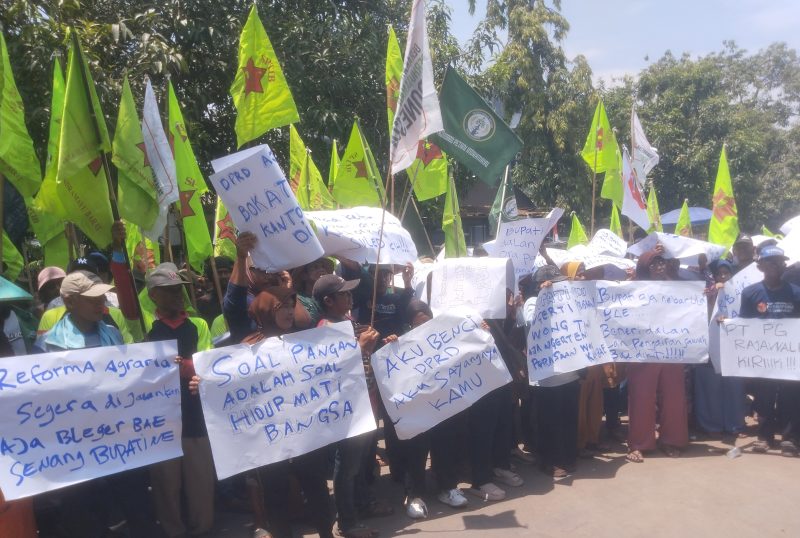 Ratusan petani dari berbagai organisasi di Kabupaten Indramayu menuntut agar Hak Guna Usaha (HGU) milik Pabrik Gula (PG) Rajawali tidak diperpanjang.