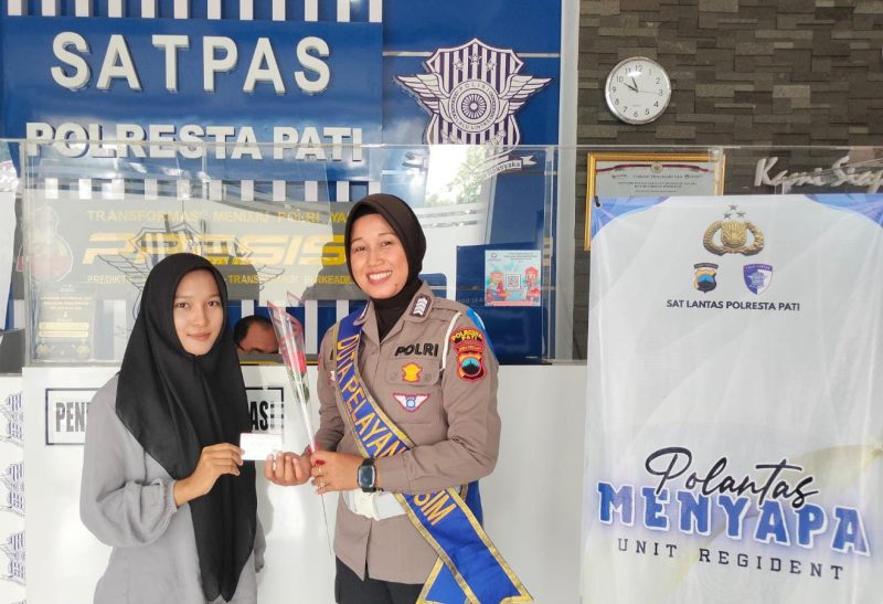 Dalam rangka meningkatkan kualitas pelayanan publik, personel Satuan Lalu Lintas Polresta Pati dengan tema “Polantas Menyapa’ kantor Satpas Pati menyediakan snack.