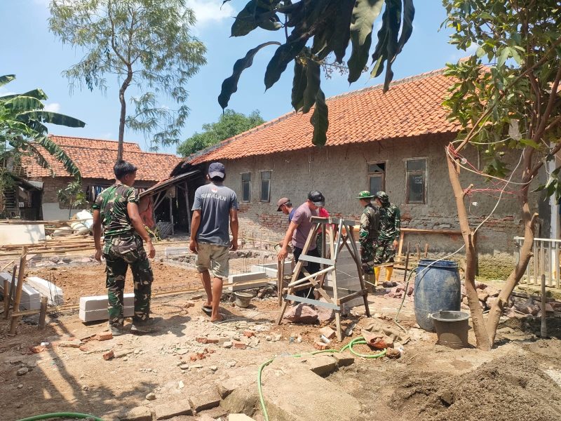 Anggota Satgas TNI Manunggal Membangun Desa (TMMD) ke-126 Kodim 0616/Indramayu terus melaksanakan kegiatan pembangunan Rumah Tidak Layak Huni (Rutilahu) milik Bapak Warkadi yang berlokasi di Blok Siwalan RT 012 / RW 004, Desa Longok, Kecamatan Sliyeg, Kabupaten Indramayu. (14/10/25).