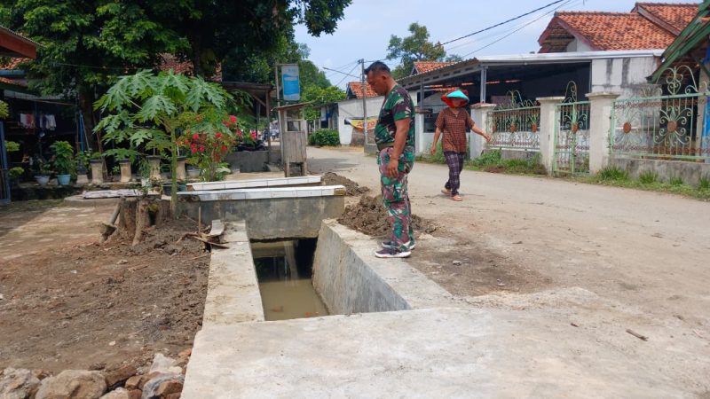 Anggota Satgas TNI Manunggal Membangun Desa (TMMD) ke-126 Kodim 0616/Indramayu melaksanakan pengecekan pembangunan drainase di Desa Longok, Kecamatan Sliyeg, Kabupaten Indramayu.