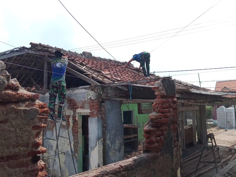 Anggota Satuan Tugas TNI Manunggal Membangun Desa (Satgas TMMD) ke-126 Kodim 0616/Indramayu melaksanakan kegiatan pembongkaran Rumah Tidak Layak Huni (Rutilahu) milik Ibu Narsitem, yang berlokasi di Blok Siwalan RT 17 RW 05 Desa Longok, Kecamatan Sliyeg, Kabupaten Indramayu, Kamis (15/10/2025).