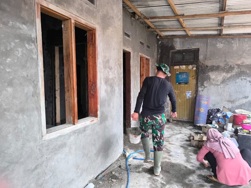 Saat ini, proses pengerjaan telah memasuki tahap plester dinding. Dengan penuh semangat gotong royong, personel Satgas bersama warga sekitar bahu-membahu menyelesaikan pekerjaan tersebut agar segera bisa ditempati dengan layak.