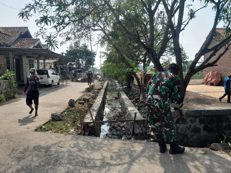 Anggota Satgas TMMD ke-126 Kodim 0616/Indramayu terus melanjutkan pembangunan Tembok Penahan Tanah (TPT) yang berlokasi di RT 01/RW 01 Blok Sigedang, Desa Longok, Kecamatan Sliyeg, Kabupaten Indramayu, Senin (20/10/2025).