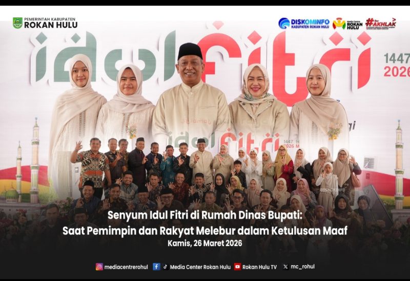 Senyum cerah penuh kedamaian yang terpancar dari wajah Bupati Rokan Hulu, Anton, ST, MM, bersama Ketua TP- PKK Ny.dr Yeni Dwi Putri dan keluarga saat berdiri di ambang pintu rumah dinasnya, Kamis (26/3/2026). Ia baru saja menanggalkan ihram dan menyelesaikan perjalanan spiritual di Tanah Suci sejak pertengahan Ramadan hingga lebaran Idul Fitri 1447 H. Namun, alih-alih memilih istirahat setelah perjalanan jauh, ia justru membuka lebar-lebar pintu rumahnya.